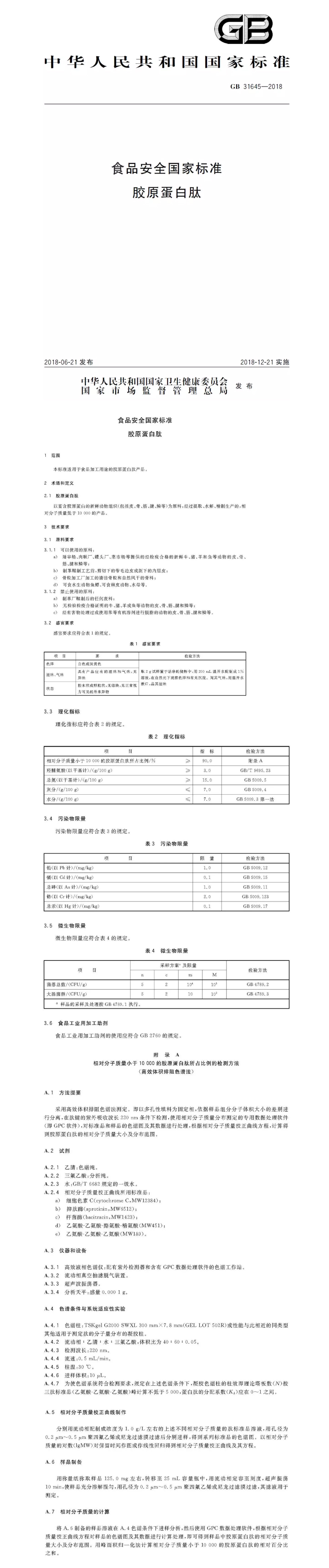 GB 31645-2018 食品安全国家标准 胶原蛋白肽