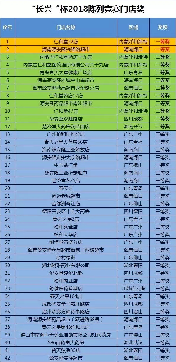 门店前三等奖获奖名单
