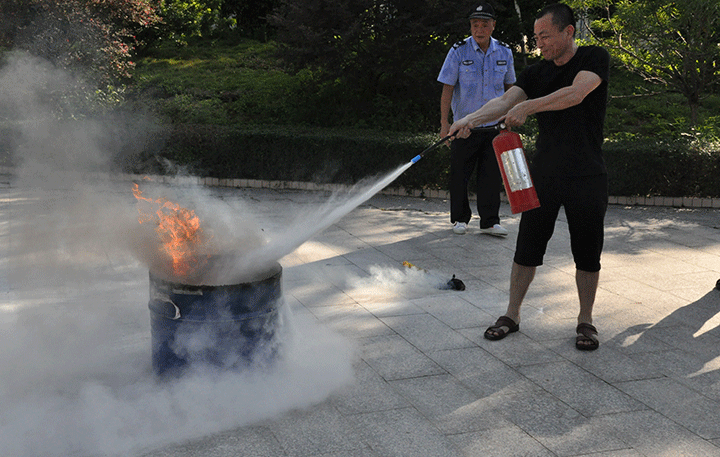 消防专员给大家一一讲解消防器材的使用方法